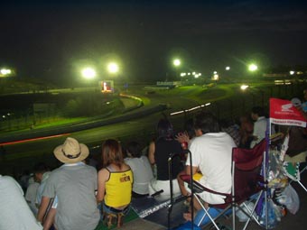 今回の8耐観戦中での『イコハチ』企画の一貫として「イコハチBBS」への速報情報等の書き込み、そして「モバイル版・イコハチML(メーリングリスト)」による携帯端末へのリアルタイム情報送受信という試みをしていました。そんなわけで、スタート時間前後からピコピコと携帯電話も忙しなくメール受信に追われていました。