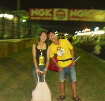 レース終了後、コース上へと下りていき、表彰式はシケインのゼブラゾーンに腰掛けてモニター越しに拍手〜〜♪ 路面はまだ少し温かく、今さっきまでの熱戦を感じさせてくれます。 |