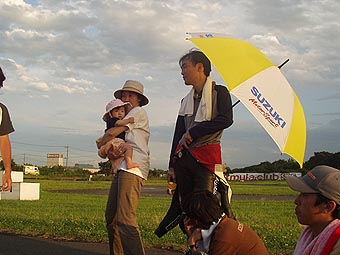 走り終えた汗だくのライダーを甲斐甲斐しくお世話されていたMなん母上さまにつきさん。ずぶ濡れになってのテント支えにお疲れ様でした(笑)