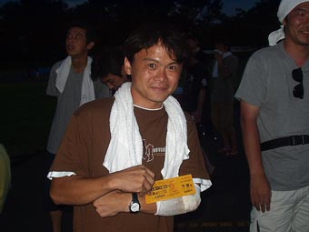 えいさん、フィニッシュラインでぱたぱたされるのを見届けた瞬間、奇声を上げながら隣にいたユースケさんと握手!そのあとだれそれ構わず握手したり背中叩いたり(笑)