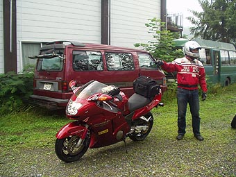 正直以降のルートはもうお任せモードだったのでわかりませぬ(爆)。せっかく無料になったのだからととりあえず「ビーナスライン」を目指したようです。前日後半もそうだったのですが市街地走行の際、腰痛からポジションきつく辛いということでろみひーは自分のGSXR1000とあっちさんのブランニューマシン(笑)CB400を交換してもらい走ってました。「仕方ないな〜」という顔しながらも「ウッシッシ・・・」とお尻からしっぽが出掛かっているあっちさんを私は見逃しませんでした。結局言うことを聞かずブラックバードを断念してのCB400でしたからね、その喜びようったら・・・。「このバイク、絶対ズルイ!」とR1000を指差しそう豪語したのでした。う〜む、そんなにR1000って凄いんだぁ・・・。ヨダレじゅるじゅるな私でありました。